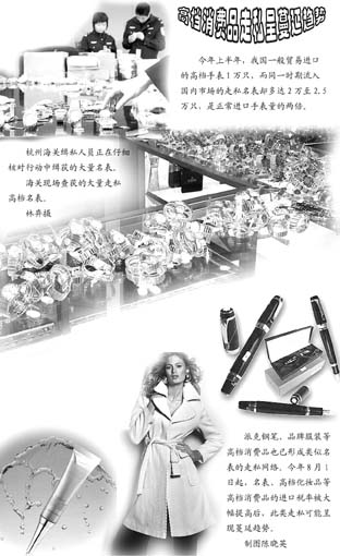 据杭州海关有关负责人分析,目前高档消费品走私犯罪手法日益隐蔽,集团化和网络化日益明显,并且有向高档消费品全行业蔓延的趋势。除了丰厚的利润诱惑外,高档消费品在销售渠道管理方面的混乱也让走私有机可乘。