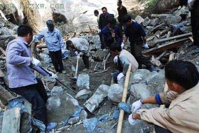 坍塌石桥位于连城县莒溪镇陈桥村赤水溪上,距离镇区还有30公里的山路,其中有近十公里的路段是村民近期才修建出来的便道,事发地前2公里甚至没有路,要靠攀爬山林才能进入。昨日中午,记者来到事发地时,约二十米深的山涧底一片狼藉,到处都是成吨重的石块和木头,搜救工作还在进行中。据了解,修建石桥的工程队共有20人,事发时有9人在施工,其中6人在桥面。