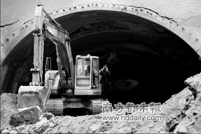 昨日下午,记者来到事发工地时,挖掘机正在清理塌方现场。据工地工人介绍,事故发生在凌晨3时左右,当时有3名工人在隧道出口处施工,由于躲闪及时,只有两名工人在事故中受伤。事故发生后,辖区派出所和街道办工作人员曾到现场勘测险情。