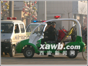 凤翔县城管执法大队办公室一位工作人员告诉记者,这几辆电瓶执法车使用了1个多月,出厂时就配有警灯、警报器、喊话器。按照有关规定,非警单位不得使用警用器材,这几辆行政执法车使用警灯确实不合适。该队赵队长也承认,这几辆执法车使用的警用器材,目前还未报有关部门批准。