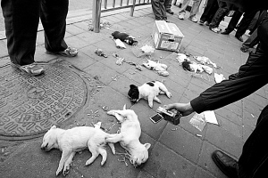 昨日上午10时50分许,在丰台太平桥城管分队执法过程中,六里桥南一处地摊十余只待售猫狗等小动物遭故意摔踩毙命。城管队员称是摊主对抗执法故意杀死动物,附近无照摊贩们称虐杀小动物是城管所为。事发后,一度有近300名群众围观表达不满,中国小动物保护协会会长芦荻前往丰台城管大队了解事实真相。