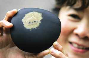 陈女士收藏的“火娃”头像奇石 记者 孙须 摄