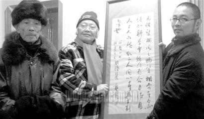 昨日下午,记者来到两位老人家里,见老人们的儿女搀扶着两位老人,拿出了跟随他们夫妻60余年的郭老真迹。四川省博物馆副馆长魏学峰接过捐赠的书法后,向老人颁发了《文物征集奖励证书》,并表示感谢。