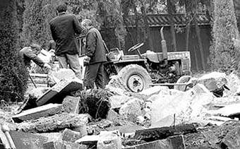 “前些日子,烈士陵园内车水马龙,工人们正在拆除第一区的烈士墓碑。他们先用大型装载机推倒烈士墓碑和墓身,再由人工打碎装车拉走。还好,在政府干预下,现在已经停工了。”12月26日,不少市民向记者反馈消息和发表看法。
