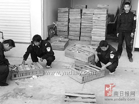 当日7时许,梁河县森林公安分局在拦截下一辆小卡车后,经民警检查,车厢内用数袋玉米遮挡伪装的很多木箱中装有大量蛇类动物,执勤民警立即进行进一步盘查,嫌疑人景某、管某无法提供合法来源证明,由于数量巨大民警当即将二人擒获。野生动物工程师对这些蛇做了鉴定:灰鼠蛇两件、滑鼠蛇66件、圆斑蝰22件。经初步称量,涉案野生活体蛇总共重量近两吨,目前,二人已涉嫌非法运输珍贵、濒危野生动物罪被梁河森林公安分局刑事拘留。