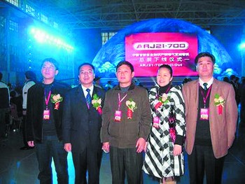 曹检生(右二)幸运地参加了“翔凤”下线仪式。(资料图片)