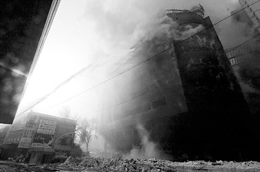 据参加救火的消防人员介绍,目前两栋大楼的火势已得到基本控制,预计到3日夜间火势可基本熄灭。 (记者刘栋)