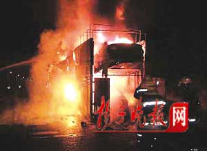 记者从火后残骸可看出,这辆运输车是一辆超长货车改装的,车厢是用钢铁支架撑起来的,然后再焊上轻型铁板,密封性不如集装箱。而底层所摆放的几辆轿车非常贴近货车底盘。为何轮胎摩擦起火能够蔓延到车内?据现场的救援人员分析,一般来说,引起轮胎起火的主要原因是轮胎在超标准负荷情况下长时间运行,使内部积热散发不出来引起自燃。另外,由于刹车“咬死”,刹车片不灵,高速运转后刹车片与轮辋磨擦产生高温,传递给轮胎,也容易引起轮胎受热自燃。轮胎为可燃、易燃材料,一旦燃起容易迅速蔓延,加之天气干燥,高速路上风大,火舌通过车厢缝隙钻进车厢内,点燃轿车轮胎或其它可燃性材料,而每辆轿车的内装修、电线或少量的油料均是可燃的,一旦烧起来,火势很猛,救火会非常困难。 (王幸福 郭一鹏 任国勇)