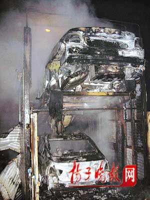 “幸好公司为这批宝马车上了保险,不然我这一辈子都赔不起了!”看着变成废铁的车子,驾驶员老王庆幸地说。据老王介绍,他是搞物流的个体经营户,挂靠在沈阳一家运输公司。他们是2日早晨从沈阳出发前往温州的,准备将这批宝马车送给那里的经销商。他和副驾驶轮流开车,几乎马不停蹄,连睡觉都在车上。他告诉记者,出门前也检查了轮胎和线路,自己也搞不清怎么会失火的,这次出了这么大的事情,赚钱是没有指望了。值得庆幸的是,宝马车和运输车统统上了保险,他已经联系了运输公司和厂家,他们将会联系保险公司前来查看。