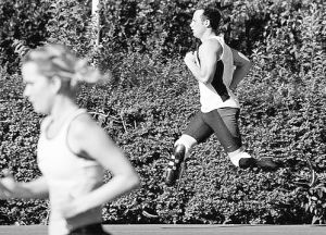 南非体育科学研究所的罗斯·塔克(RossTucker)持有类似观点。他还指出义肢的另一特性:从来不会感到疲惫。不同于木腿简单的支撑功能,在体重压力作用下,运动义肢会在接触地面时弯曲,然后在换步时弹开,从而把运动员垂直施与跑道的压力转化成水平方向的动力。