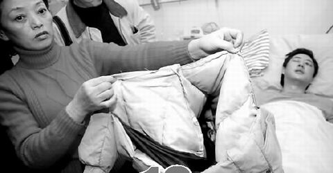 妈妈从床边拿起一件乳白色羽绒衣,上面满是脚印,已被撕扯得破烂不堪。“当时,我儿子就是穿着这件羽绒衣去采访,事情发生后,三四个人冲上来抢摄像机,我儿子把摄像机藏在羽绒服里,那些人抢不到机器,对他拳打脚踢,他的背上全是脚印!”话未说完,妈妈就泣不成声了。爸爸怜爱地注视着儿子,默默无言……