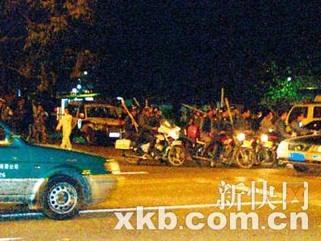 小区居民阿磊目睹了事情的全过程。“几十人骑着清一色的治安队的摩托车,穿着治安队的衣服或迷彩服,也有穿便装的,一起冲进小区,很恐怖的。”阿磊说,这些人冲进物业管理处,拿铁棍砸碎玻璃,还追着小区保安打。“他们手里的钢管有的一米多长、有的两米多长,还有人拿匕首或电棒。”
