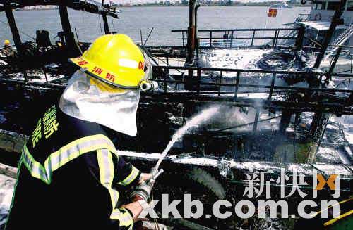 一名消防员指着船尾两个被埋在木炭堆中的煤气瓶说:“据船员说,船上本来有3个煤气瓶,其中两个刚加满气,另一个是空的,起火后有一个爆炸了。一名船员当时在船头位置,发现起火后就把缆绳解开了。后来他发现自己的手机放在驾驶舱,就闯进去想拿出来报警,没想到手机被烧坏了。”