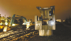 附近青城豪生国际酒店一位自称酒店的工作人员说,轨道是17日晚11时被敲断,只剩下3个水泥柱。但具体是谁敲断的,他并不知道。