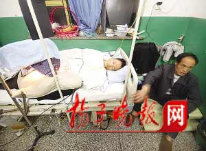 民工王超的哥哥正在抢救室内陪着受伤的弟弟。 宋峤 摄