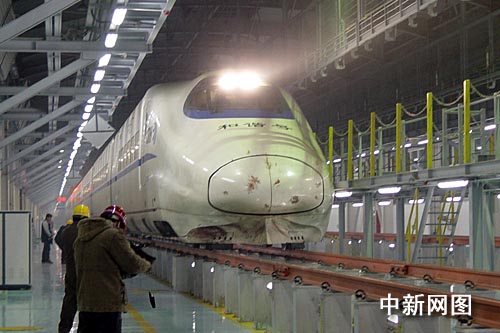 “为了确保他们(动车)的安全运营,每两天或运行四千公里后,就要进行一级检修。”动车组运行所所长武苏永说,检修库就像医生的“听诊器”一样,当动车经过时,即可检测到车轮上的毛病、故障。