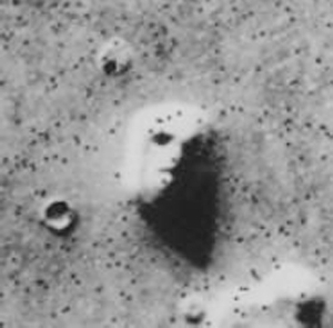“火星之脸”照片上世纪70年代曾在科学界和科幻迷中引起了巨大的激动,因为“火星之脸”看起来就像是一颗抬头仰望夜空的硕大人头。不过后来拍到的新火星照片证实,“火星之脸”只不过是一块普通的火星岩石而已,只是由于特殊拍摄角度的光学错觉才形成了人脸形状。