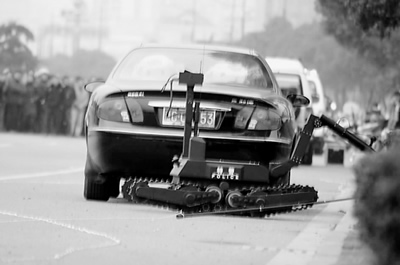 下午4时多,大批民警将车子前后50米范围内进行戒严。排爆人员穿上防爆服,检查和调试排爆装备后,匍匐着靠近别克轿车,观察底盘,然后撤退。