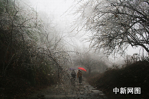 中新网韶关1月27日电(冯昶 李凌 朱祖纯)因受北方强冷空气连日来不断向南推进,一夜冰雪把地处岭南素有中国“四大”赏梅胜地之一的粤北南雄市梅关古道装扮得银装素裹,格外妖娆。昨今两天,适逢双休假日,来自四面八方的游人相争访古道,踏冰雪,上雄关,赏香梅,尽情领略傲雪品梅的情怀。