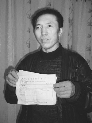 李洪潮向记者出示上缴假币的凭证。 李静/摄