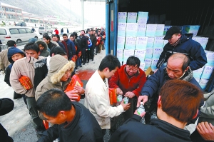 昨日,京珠高速公路破除近20公里冰面,广东韶关仍有2000多辆汽车1.6万人滞留,相关部门正在向灾民发放食物。龙成通 摄