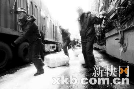由广东省交通厅从韶关、广州等地调集的十余台推土机和平地机,昨天全部抵达广东京珠北有关路段,展开破冰作业。在推土机的重压下,寒冰被碾碎,洒盐车紧随其后往路面上撒盐,逐步清出一段段不再打滑难行的路来……