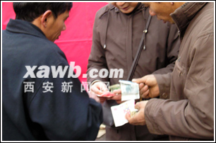 为了一探究竟,记者挤进了购票队伍时,不一会,便有两名中年男子手里拿着一沓火车票主动上前搭讪。当记者表示要预订2月4日到北京的卧铺票时,两男子立即信誓旦旦地说,他们手里有票,何必要挤在这里排队“活受罪”;只要按“行情”每张票外加120元的“手续费”,他们马上就能搞到火车票。据两男子说,票到他们手里也不容易,大都是雇人日夜去排队弄票的。(记者 王超文/图)