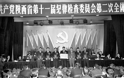 在昨日的会议上,省委办公厅、省政府办公厅作出了《关于表彰奖励查处省高速公路建设集团公司原董事长、党委书记陈双全等人违纪违法案先进集体和有功人员的决定》:对省纪委709专案组记集体一等功一次,对省纪检监察系统、省审计系统、省公安厅、西安市检察院的54名有功人员分别记一等功、二等功、三等功和嘉奖一次的奖励。省委书记赵乐际,省长袁纯清,省委副书记王侠等领导为先进集体和有功人员颁发了证书。