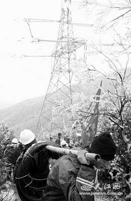 29日,一场大雪飘落南昌。12时30分,记者登上梅岭主峰,来到海拔近千米的南梦线72号铁塔,这是江西电网大动脉的一环,它的修复以及再次运行将把来自三峡的“血液”直输我省,填补1/3的用电缺口。