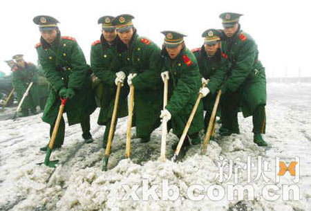 目前梅花至大桥(K24-K51)双向结冰仍很严重。截至昨晚9时,因为天冻下雨,京珠北双向继续封闭。从湖南郴州方面获悉,郴州军分区已调派装甲车赶赴重灾路段进行碾冰任务。由于有新冷空气补充南下,粤北地区持续降温,气温基本维持2℃-5℃,最低气温为-1.8℃,湿度达95%,同时还下起了中雨,又起了大雾,能见度不足30米。恶劣的天气给京珠北破冰工作带来了很大压力。昨天,京珠投入的机械设备增到260台套,分80个班次不停作业。这些机械包括铲车38台、推土机16台,人员约1500人。昨天破冰里程已经达到52公里,但由于下雨及路段最低温度已降至-3.8℃,结冰始终在加剧。前晚已经打通的南下通道,进入晚间后再次出现持续降雨及气温迅速下降现象,路面再度迅速结冰,并逐步加剧,达到65公里左右。
