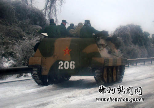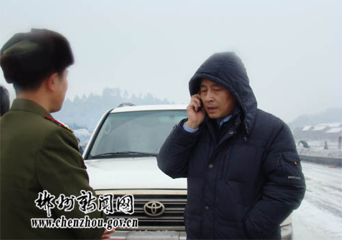 1月28日,刚刚从长沙开完两会返郴的市委副书记、市长戴道晋马不停蹄地赶到京珠高速,看望受困人员,并现场指挥交通疏导和救援行动。在京珠高速良田服务区,戴道晋召开现场办公会,他要求负责交通疏导的人员一定要坚守职责,要在最短的时间内确保被困在高速路上的人员及时疏散。同时,湖南省郴州军分区动用装甲车碾冰。