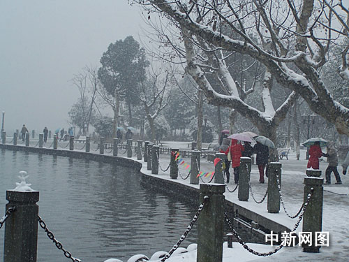 第四次大范围雨雪今起又重袭浙江,西湖边白雪皑皑。作 者:柴燕菲