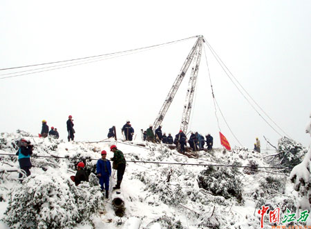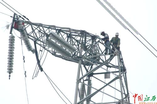 在电力“援兵”的强力增援下,萍乡电网抗冰抢险的队伍进一步壮大,抢修进度大大提升。经过供电员工的奋力抢修,截至1月31日,110千伏跑高线成功打通送电,恢复21条35千伏及以上线路供电,变电站9座,供电台区579个;目前,200余名增援队伍正分别在220千伏跑袁(萍乡跑马坪至宜春袁州)Ⅱ线和萍五(萍乡电厂至五陂下)线上进行抢修,力求在最短的时间内恢复对这两条与江西主网相联的重要线路送电。