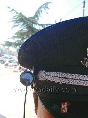 记者了解到,该设备由液晶显示屏、移动刻录硬盘组成,拍摄内容可刻录硬盘,并可连续长时间录像。安装在民警帽子上的摄像头一旦打开,可以将现场情况同步录像,以此解决处理部分案件取证难的问题,也可防止袭警事件发生,同时规范了民警行为,保证案件处理的准确性和公正性。(记者 王 磊 摄影报道)
