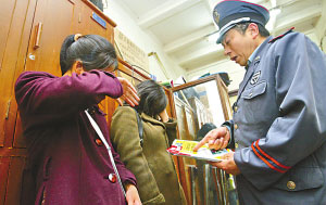 医院的保安对医托进行教育(资料图片)记者 杨帆 摄