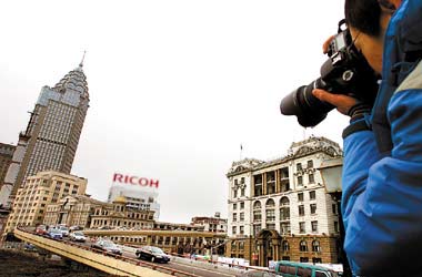 今天上午,许多摄影爱好者来到外滩,用相机留住即将拆除的亚洲第一弯 任国强/摄