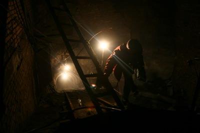 通过这道门槛再向里走5米远,便是发生事故的井口,事发4天后,浓烈的火药气味仍从洞中散发出来。通往井下的滑轨处,矿工遗落的一只黑布鞋仍摆在那里。