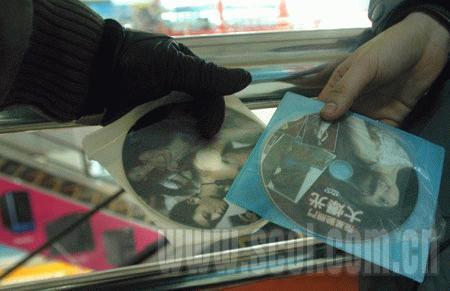 记者来到6楼,拐进一条小道。这里的人很少,只有几个店里不时有一两个人进出。该男子突然停下了脚步,四处望了一下,突然从衣服包里掏出一张碟,塞到记者手里,“赶快收起来。”他警惕地四周扫视,记者立即将碟放进包里,然后将钱交给他。黑衣男子特意说,他们已经收到风声,相关部门已经开始在查,他们卖碟都要看对象。