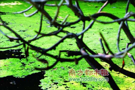 “流花湖近日出现蓝藻大面积暴发,有关专家认为,市政排水和食肆排污长期影响水体生态,而低温天气导致的鱼类大批死亡和近日的突然升温,则使原本已经受损的生态系统失衡。为今之计,应尽快投放食藻鱼类,利用这种最环保的办法来拯救流花湖。”