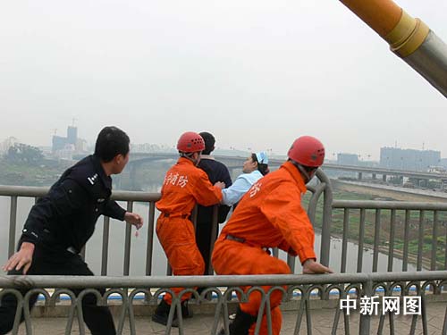 110民警和消防员经商议决定还是劝说为主,如果无法劝说再采取强制救人的方法。此时,120医护人员来到现场,110民警决定派一名医护人员上前劝导该男子,一名女护士慢步的靠近男子后开始劝说开导,可是半个小时后,该男子并不愿意回到桥面的护栏内。由于男子站在桥面上欲自杀,过往的车辆群众停停走走,驻足观看,严重的影响了过往的道路通行,交警急忙对路面的交通进行了疏导。