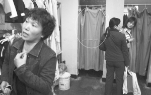 中年妇女(左一)试衣室换衣走光。 记者 金思柳 摄