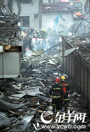 “轰”的一声巨响,广州黄埔区107国道南岗路段一汽修厂内顿时升起蘑菇云,爆炸的威力令一公里之内的房屋门窗和天花纷纷破碎掉落,爆炸点数十米范围内的建筑也被摧毁,从现场飞出的数块汽车残骸散落在距离现场几百米远的107国道和居民小区内。周围居民纷纷四散逃命。