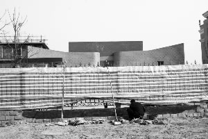 14日,工人正在修理被撞坏的铁栅栏。本报记者 王贵彬 摄