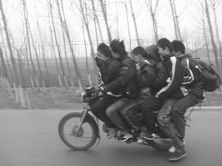 昨日上午,记者在采访途中看见一辆载着6名男中学生模样的摩托车疾驶在洛界公路上,着实让记者为他们捏了一把汗。