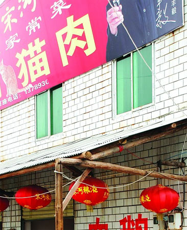 今日上午,记者随湘潭市雨湖区畜牧水产局的工作人员来到这家菜馆,远远看到门外一块广告牌已被报纸糊住,撕下一看,“特制猫肉”四字赫然在目。执法人员来到厨房察看,却没看到猫肉。“我已不卖猫肉了,过几天会把与猫有关的招牌全撤掉。”店主张老板说,他在东莞当厨师时发现,那里猫肉卖得很火,可在湖南,吃猫肉的食客寥寥无几。“这生意我不做了。”