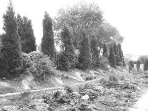 记者在玉笋山南山脚下一片每平米15000元—30000元、平均每墓6平方米的艺术葬区背后,终于找到了“简陋”的树葬园区。这片园区总共不过200平米,共有树墓19座。树与树间杂草丛生,有些矮小的墓碑甚至已被杂草湮没。而树葬区西端,竟然是一片垃圾场,里面遍布着残碑断石,还有焚烧过的渣滓。