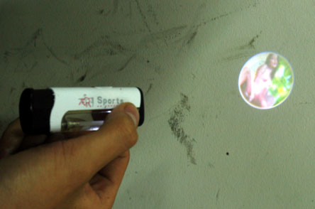 记者注意到,“艳照”打火机侧边上有个白色的小开关,底座还镶有一个很小的幻灯镜。只要轻推开关,就会从幻灯镜里射出一道光束,当光速投在稍微阴暗的物体上,就形成了一幅裸体图。这些打火机表面上没有印有任何有关生产厂家和生产日期的信息,只有一些简单的图案和一英文单词。