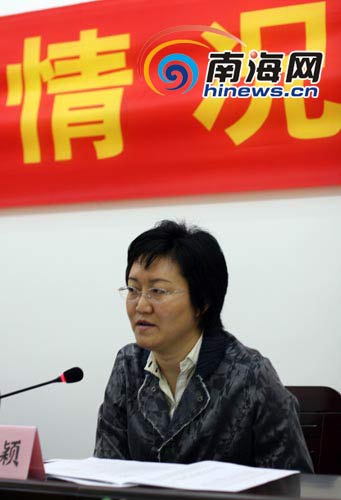 定安县委书记孙颖在情况介绍会上发言 记者 张茂 摄