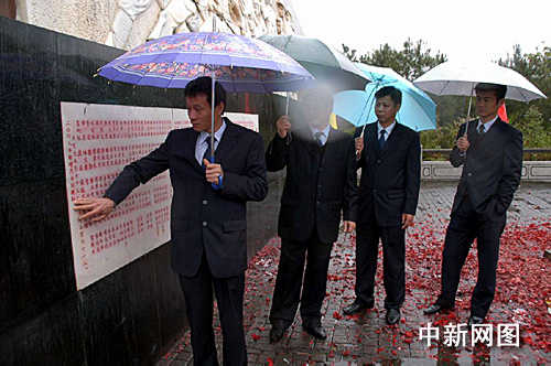 中新网韶关4月2日电(冯昶 李凌 钟俊锋 莫冲海)4月2日,阴雨绵绵中,包括县党政军主要官员在内的始兴县各界人士一千多人,聚集在广东始兴县丹凤山革命烈士陵园,祭奠革命先烈,缅怀今年初在抗冰复电战斗中因公殉职的刘焕松烈士。