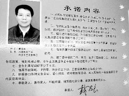 对于承诺内容就是工作职责的重复质疑,徐彦军说,两者并不重复,而是强化和突出,“每个党员的日常工作都是非常琐碎的,但承诺把工作中的重点突出出来,接受监督,更有利于工作开展。”